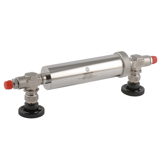 Comprises polished stainless steel vessel with two stainless steel needle valves, dip tube, and ‘O’ ring sealed cap. 70 bar (1000 psi) test pressure.